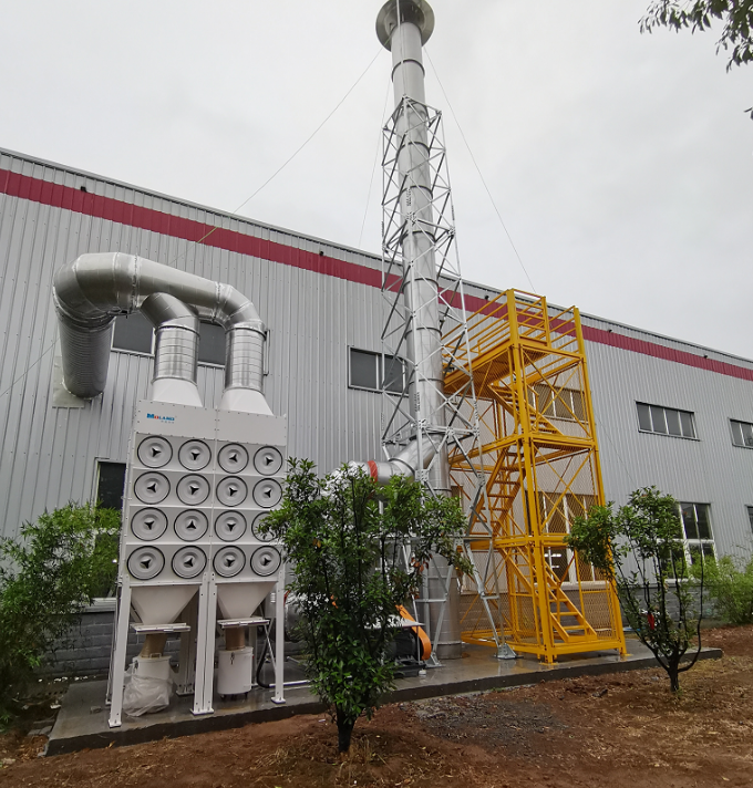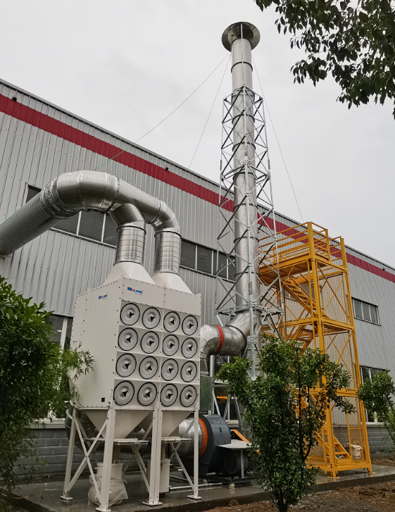 根據(jù)現(xiàn)場(chǎng)車間布局,將煙塵凈化器主機(jī)、風(fēng)機(jī)放置在車間外部平臺(tái)上;獨(dú)立電控裝置放置在車間內(nèi)便于除塵系統(tǒng)啟停操作。